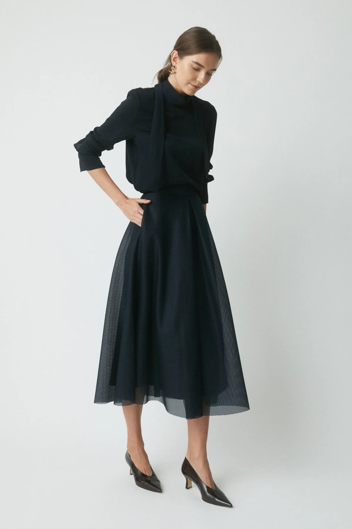 The Campbell Silk Tie-Neck Top pairs timeless femininity with soft structure. Crafted from silk double georgette, it features a relaxed fit with a necktie, keyhole back opening and full-length sleeves.