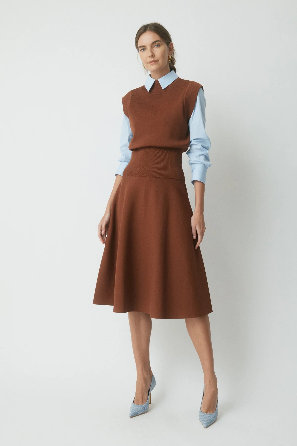 The Casey Milano Crepe Knit Skirt is a refined essential, crafted from premium Milano crepe knit for structure and ease. Designed to sit high on the waist, it features an A-line silhouette that falls to a below-the-knee length with a softly flared finish. Â Coordinate with the Casey Milano Crepe Knit Top to complete your look.