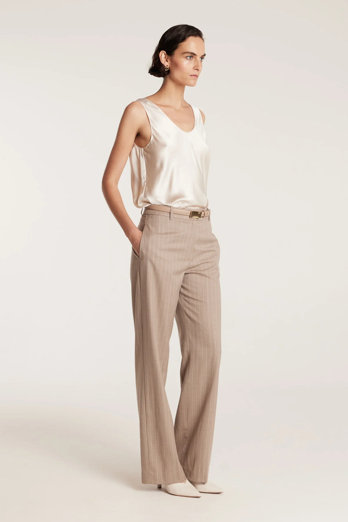 A refined layering piece, the Silk Bias Singlet is crafted from 100% silk satin for a fluid drape and soft lustre. Cut on the bias, it gently skims the body and features a simple scoop neckline for understated appeal. Perfect beneath tailoring or worn alone with relaxed separates.