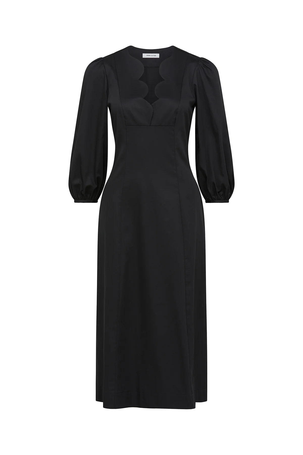 You will love the minimalist styling of the Eloise Dress. Designed with after-dark events in mind this style features a scalloped neckline detail, blouson sleeves, and a midi-length design.