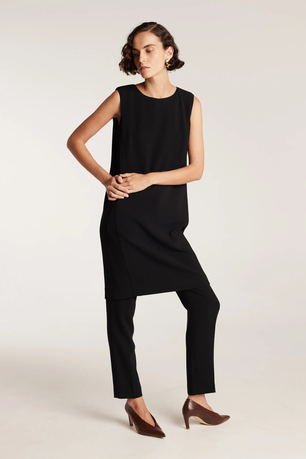 You will love the easy styling of the Kendra Shift Dress. This effortless piece offers endless styling opportunities for your workwear wardrobe. Crafted in Australia from our signature Japanese crepe. Paige is 181cm and wears a size 10/S