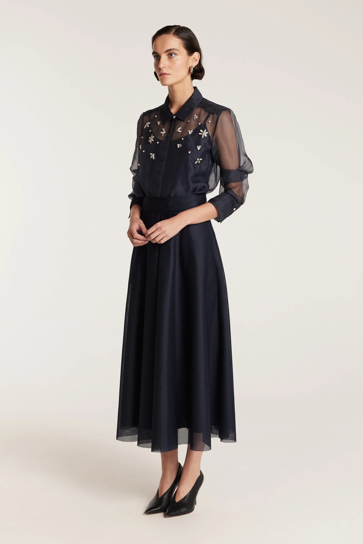 Organza Jewel Shirt - Navy