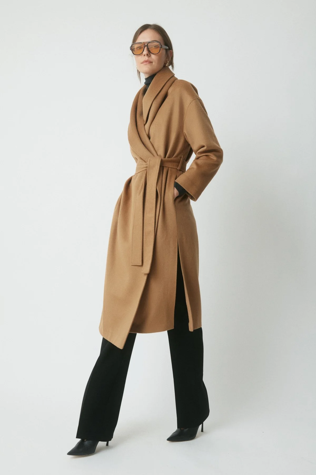 The Otto Wool Drape Coat offers a refined outer layer in a premium felted wool. Designed with a relaxed fit and wrap silhouette, it features an exaggerated shawl neckline, side splits and a waist tie for adjustable styling. A timeless piece for effortless layering.