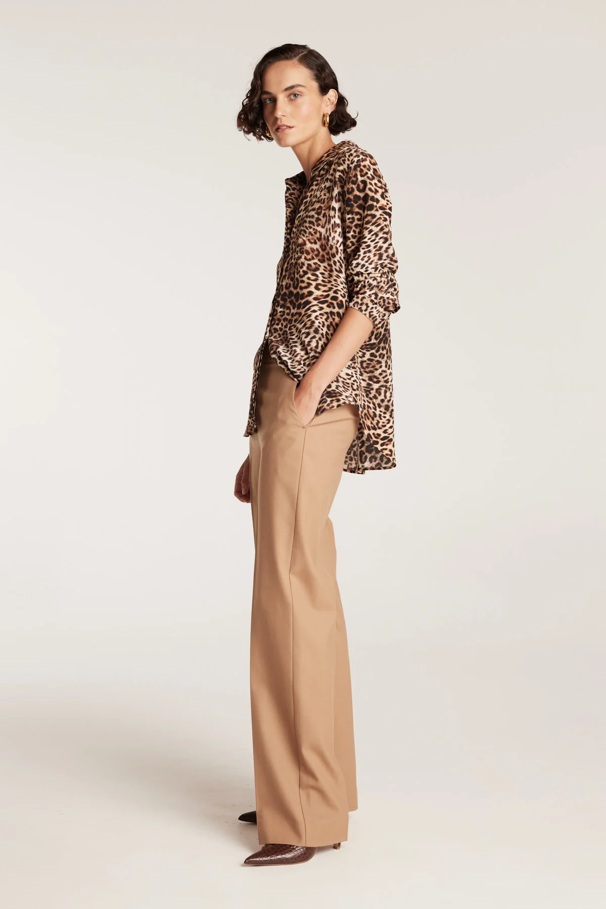 The Solana Silk Shirt brings a modern edge to timeless styling with its exclusive animal print design. Crafted from 100% silk, this Australian-made piece features a regular fit, subtle blouson sleeves, and a concealed front placket for a refined finish. Light shirring at the back yoke and a signature gold collar button adds a touch of detail to this effortlessly sophisticated shirt.